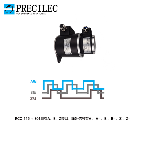 輸出有A、A-、B、B-、Z、Z-,其中輸出A、B兩相互差90°電度角的脈沖信號(即所謂的兩組正交輸出信號),從而可方便地判斷出旋轉(zhuǎn)方向。同時還有用作參考零位的Z相標(biāo)志(指示)脈沖信號,碼盤每旋轉(zhuǎn)一周,只發(fā)出一個標(biāo)志信號。標(biāo)志脈沖通常用來指示機(jī)械位置或?qū)Ψe累量清零。