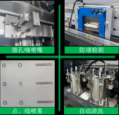 采用微孔滴噴嘴,130um直徑,噴射范圍2~8mm。伺服電機(jī)運(yùn)動(dòng)控制,點(diǎn)對(duì)點(diǎn)式噴射,大量節(jié)約助焊劑使用,噴射精度±0.25mm。標(biāo)配噴嘴防堵檢測(cè)、自動(dòng)清洗功能。
