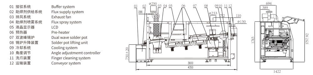 ●錫爐采用外熱式加熱,錫爐內(nèi)膽采用鑄鐵制作,內(nèi)表面防腐蝕處理,兩個低流速噴口、低氧化量設(shè)計(jì);
